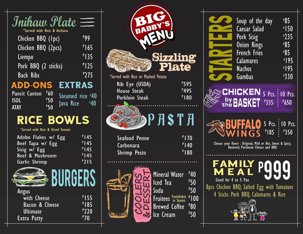 big daddy's pizza menu