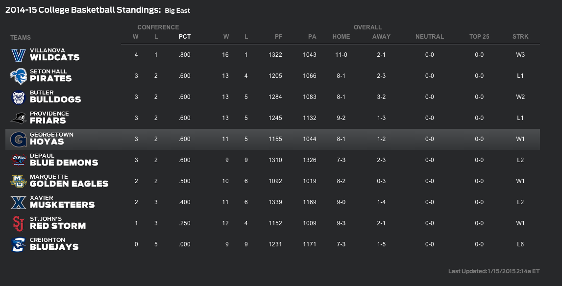 big east standings basketball