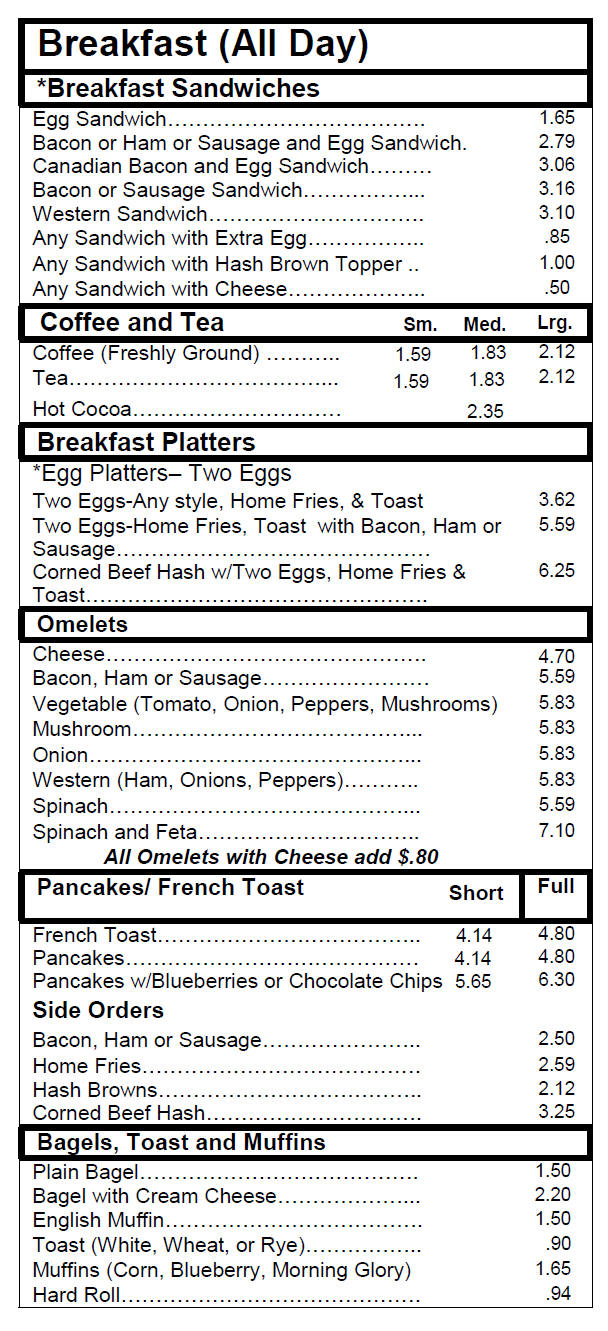 bills breakfast menu