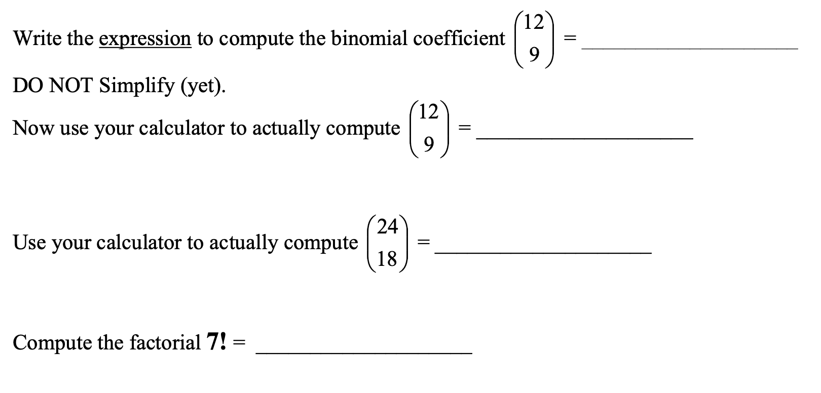 binomial coefficient calculator