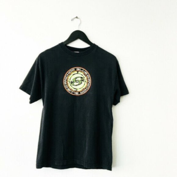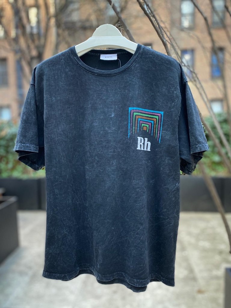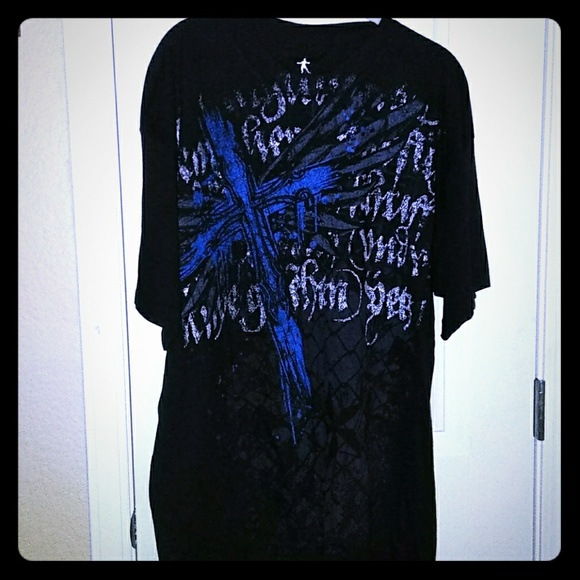 black and blue graphic tee