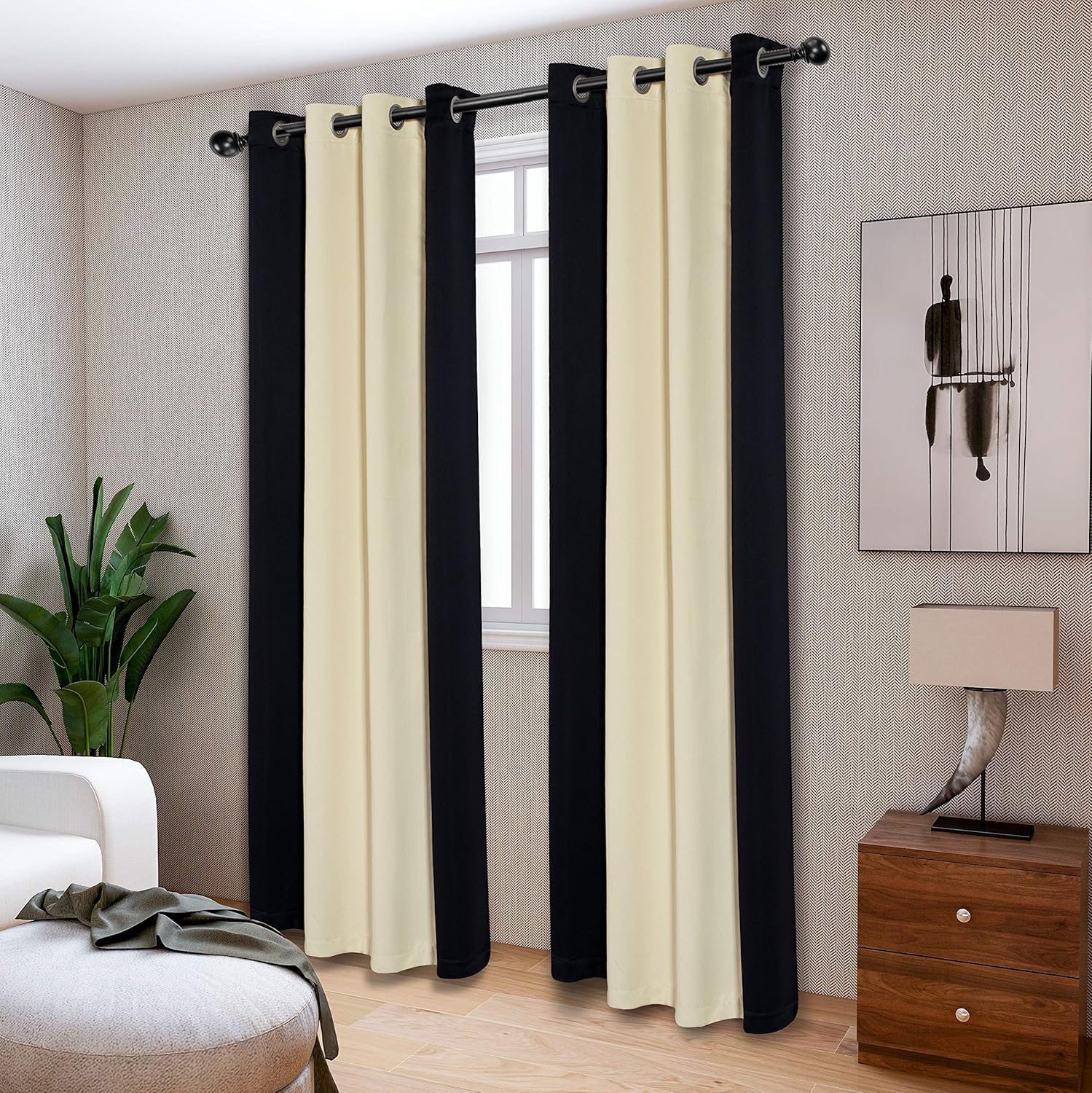 black and cream curtains