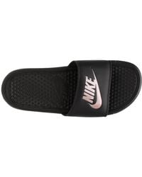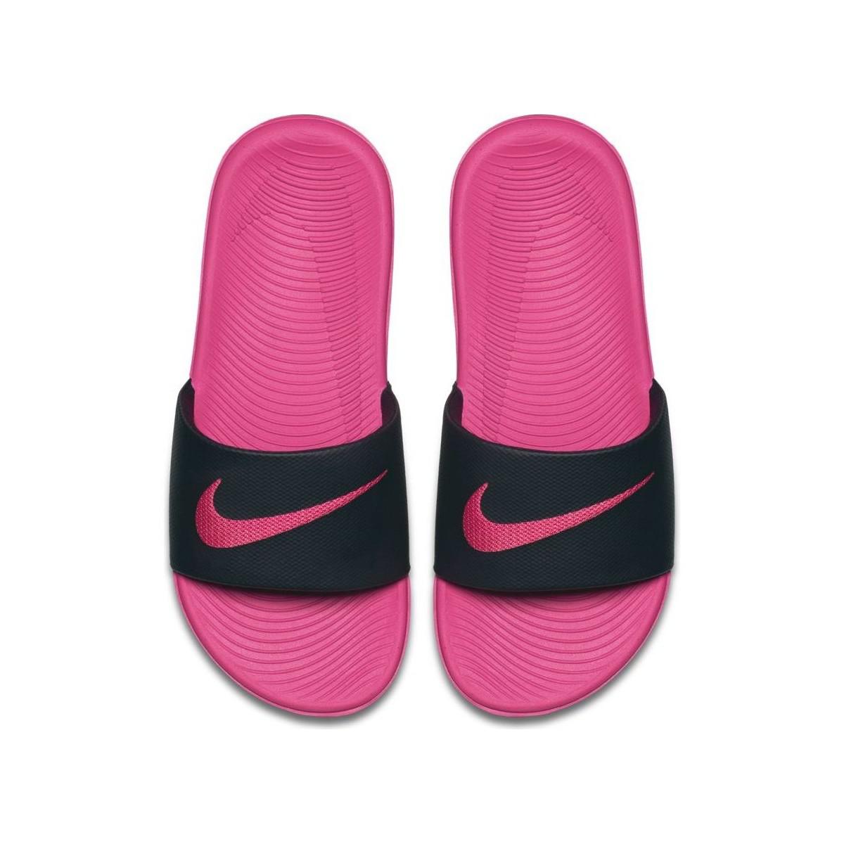 black and pink nike slides