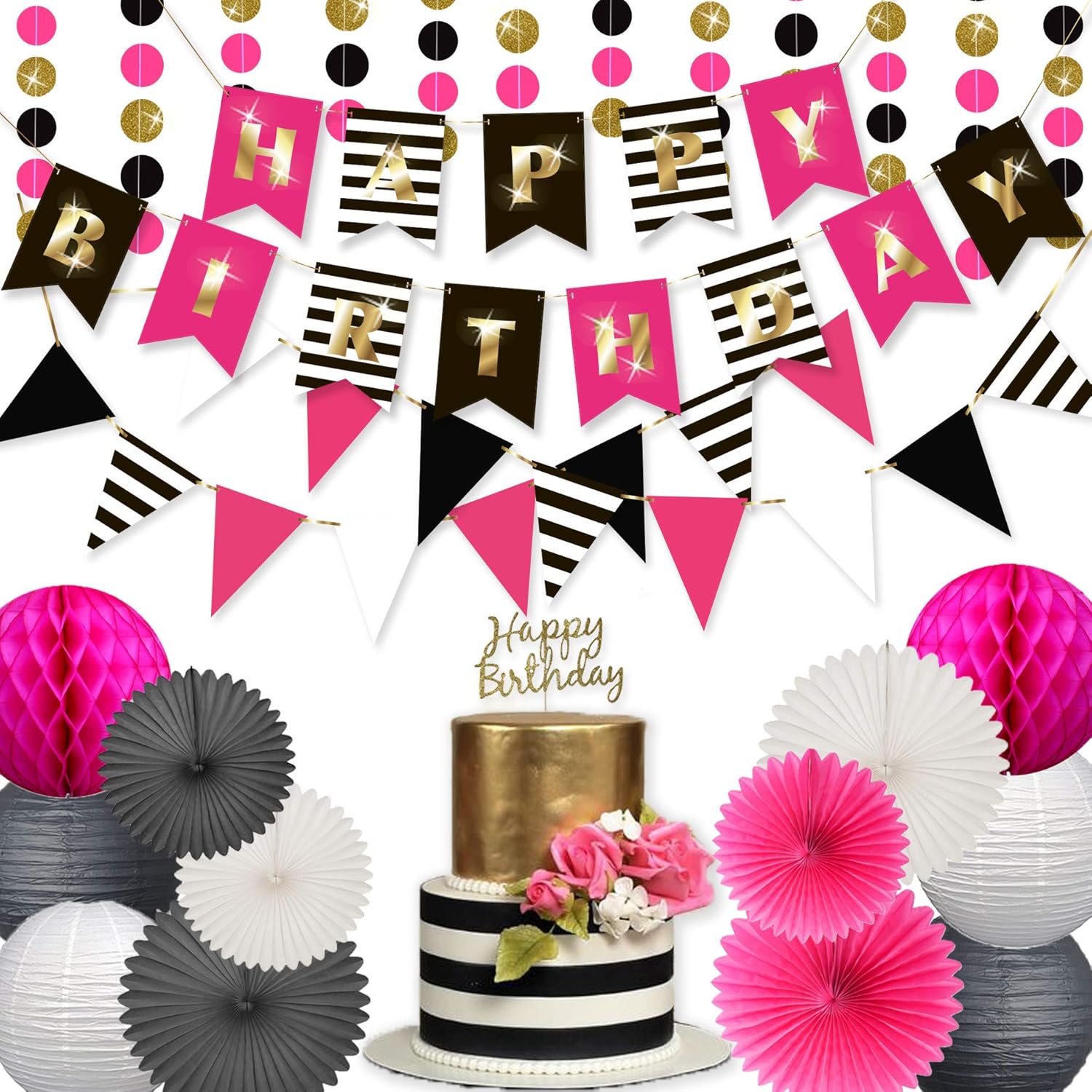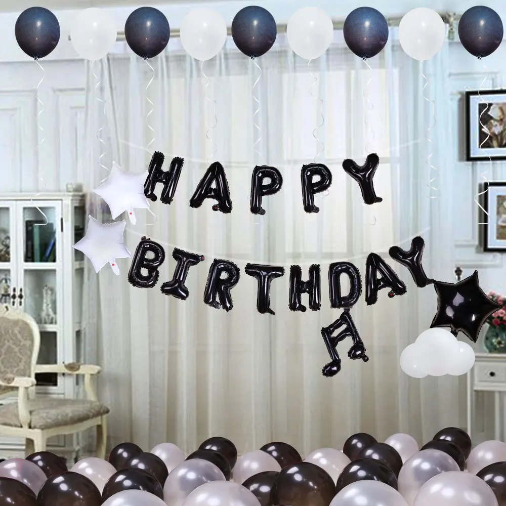 black and white birthday decorations