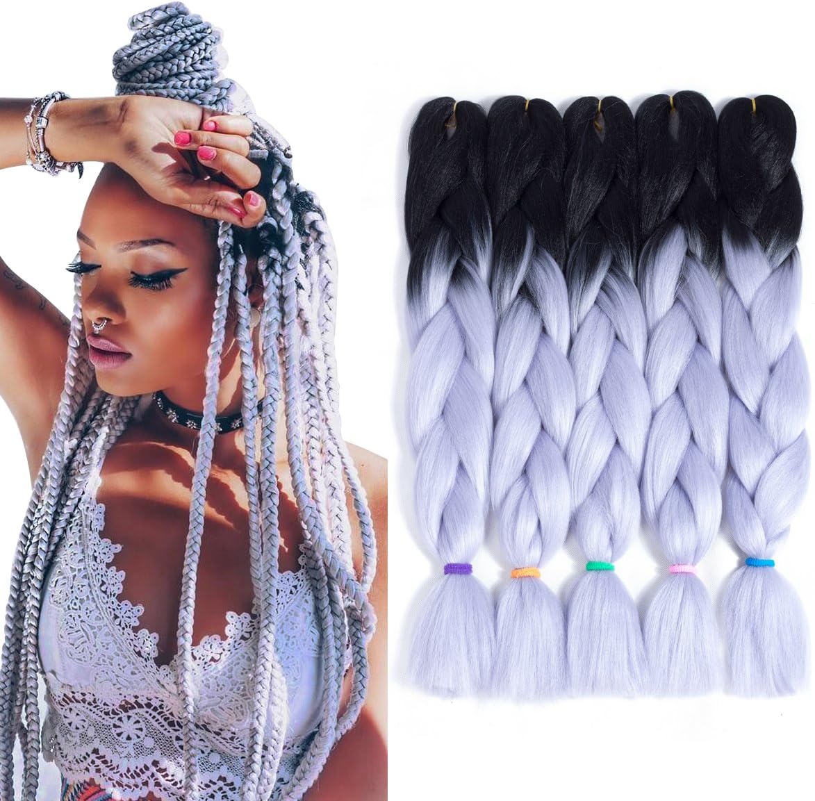 black and white braids