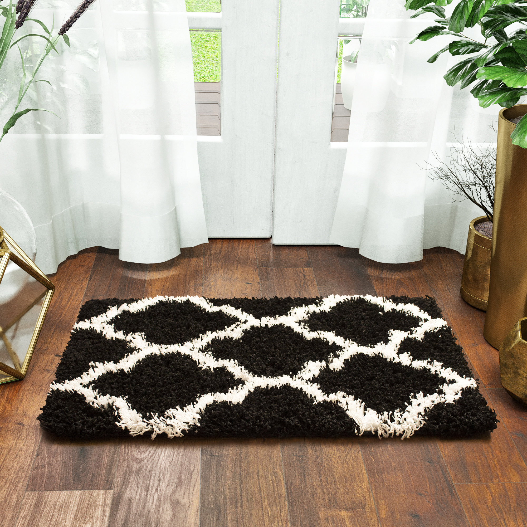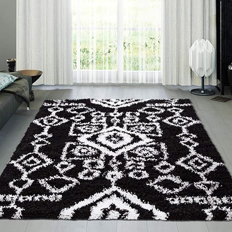 black and white shag rug