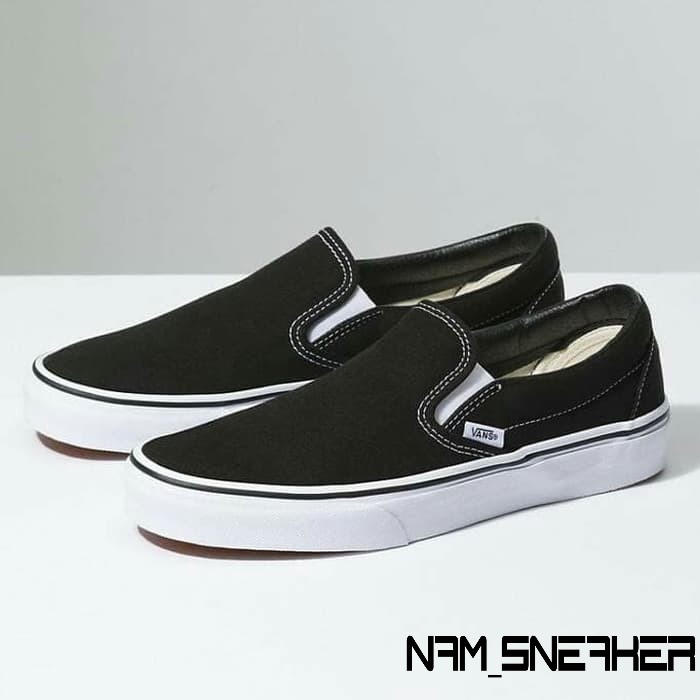 black and white slip on vans