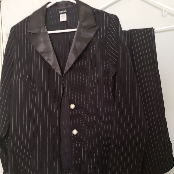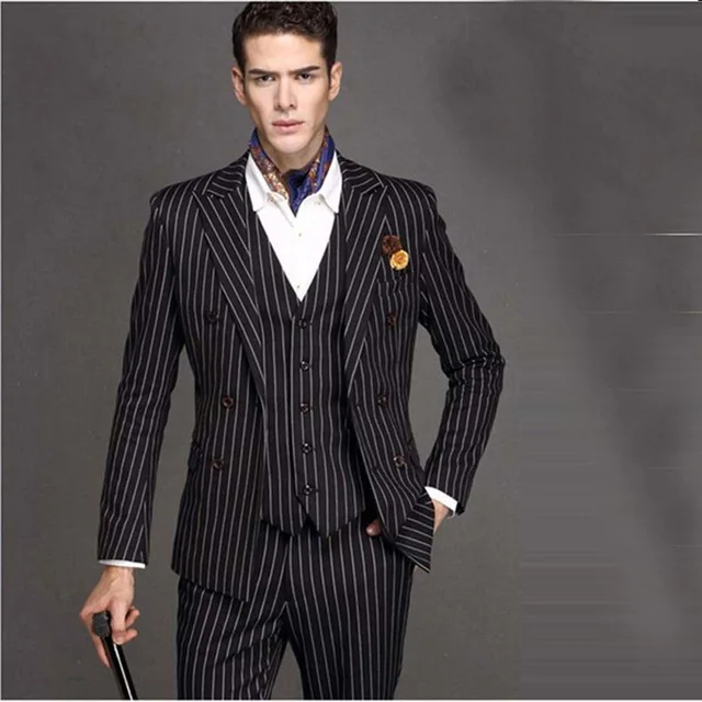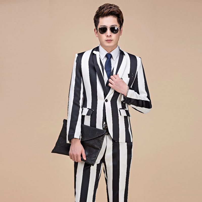 black and white striped suit