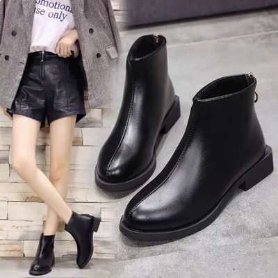 black ankle boots low heel