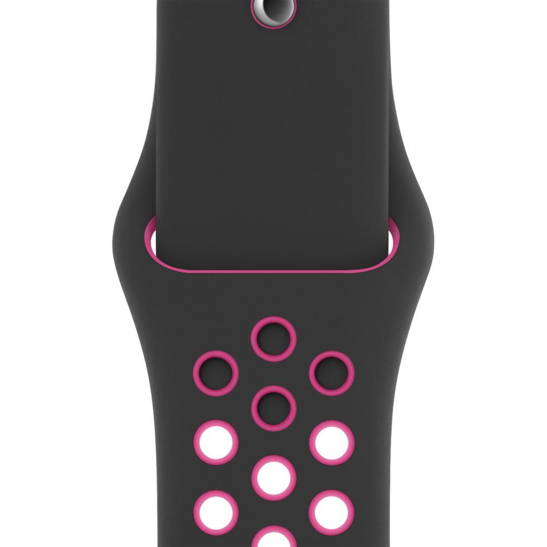 black apple watch with pink band