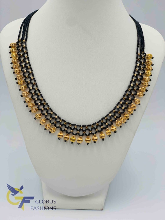 black beads gold chains