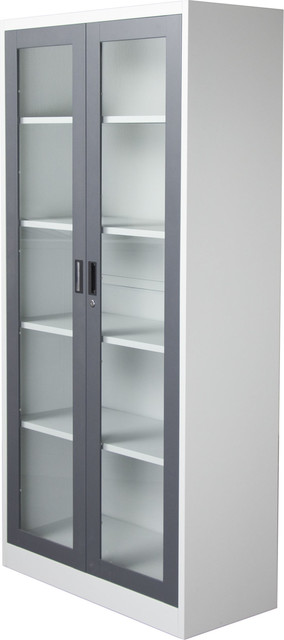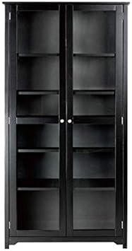 black bookcase with glass doors