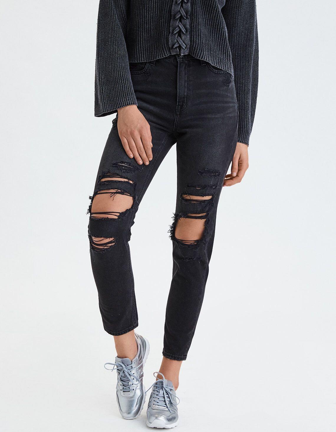 black distressed mom jeans