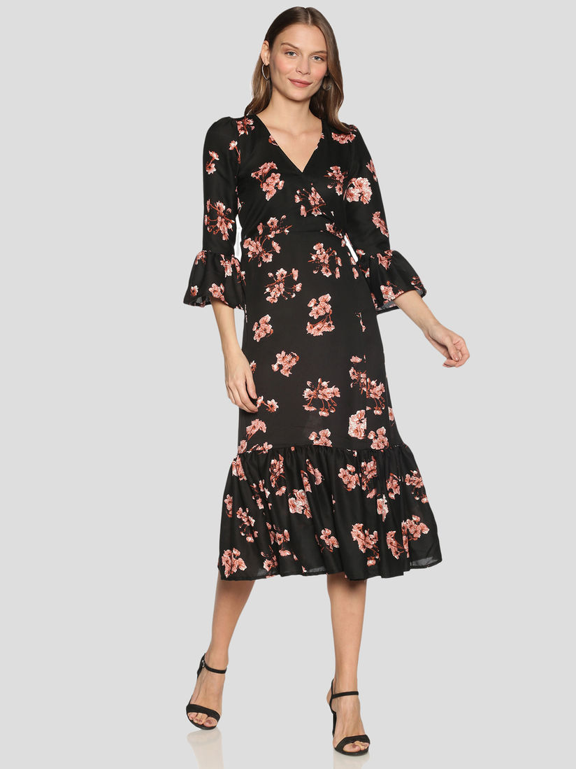 black floral midi dress