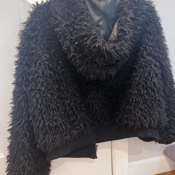 black fluffy jacket