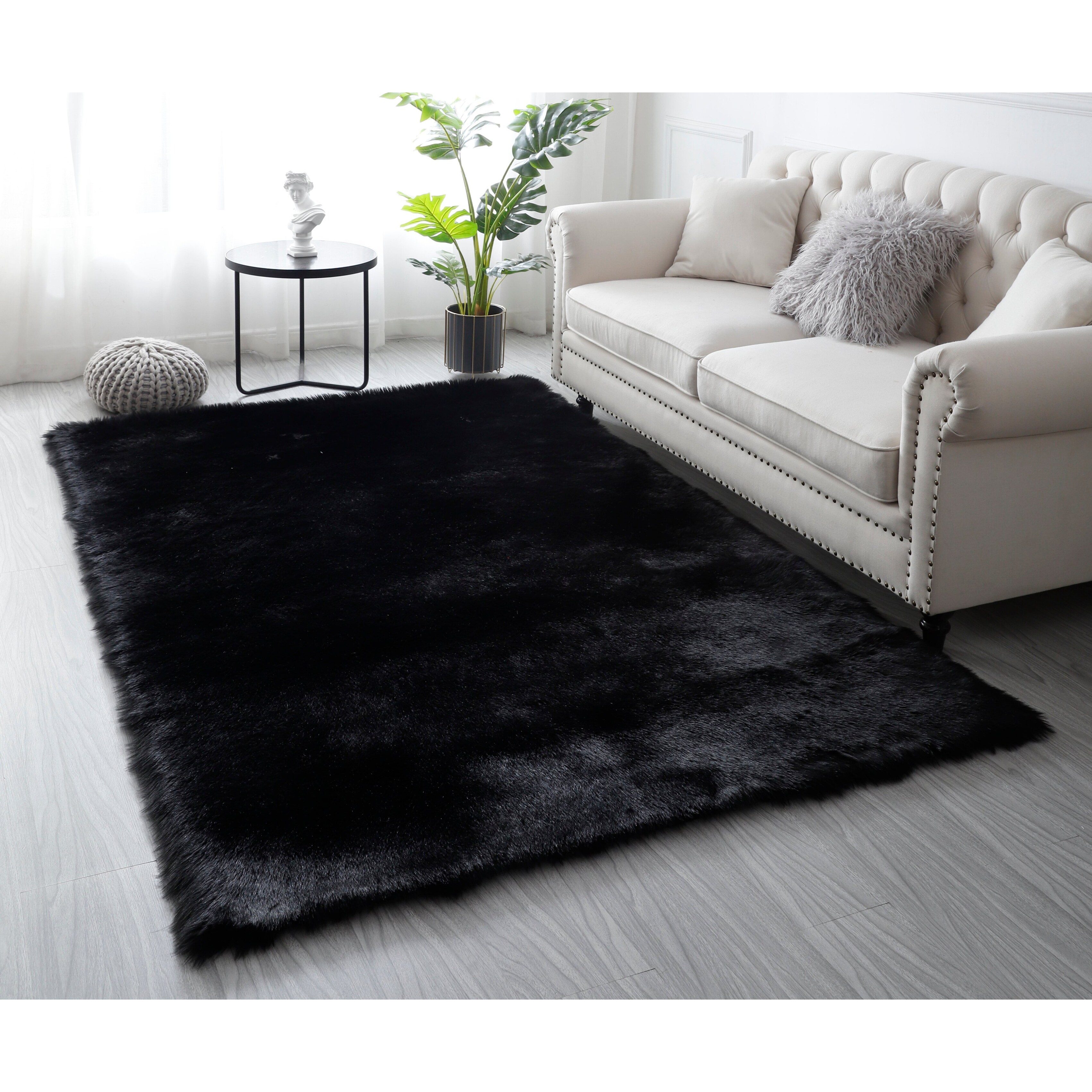 black fluffy rug
