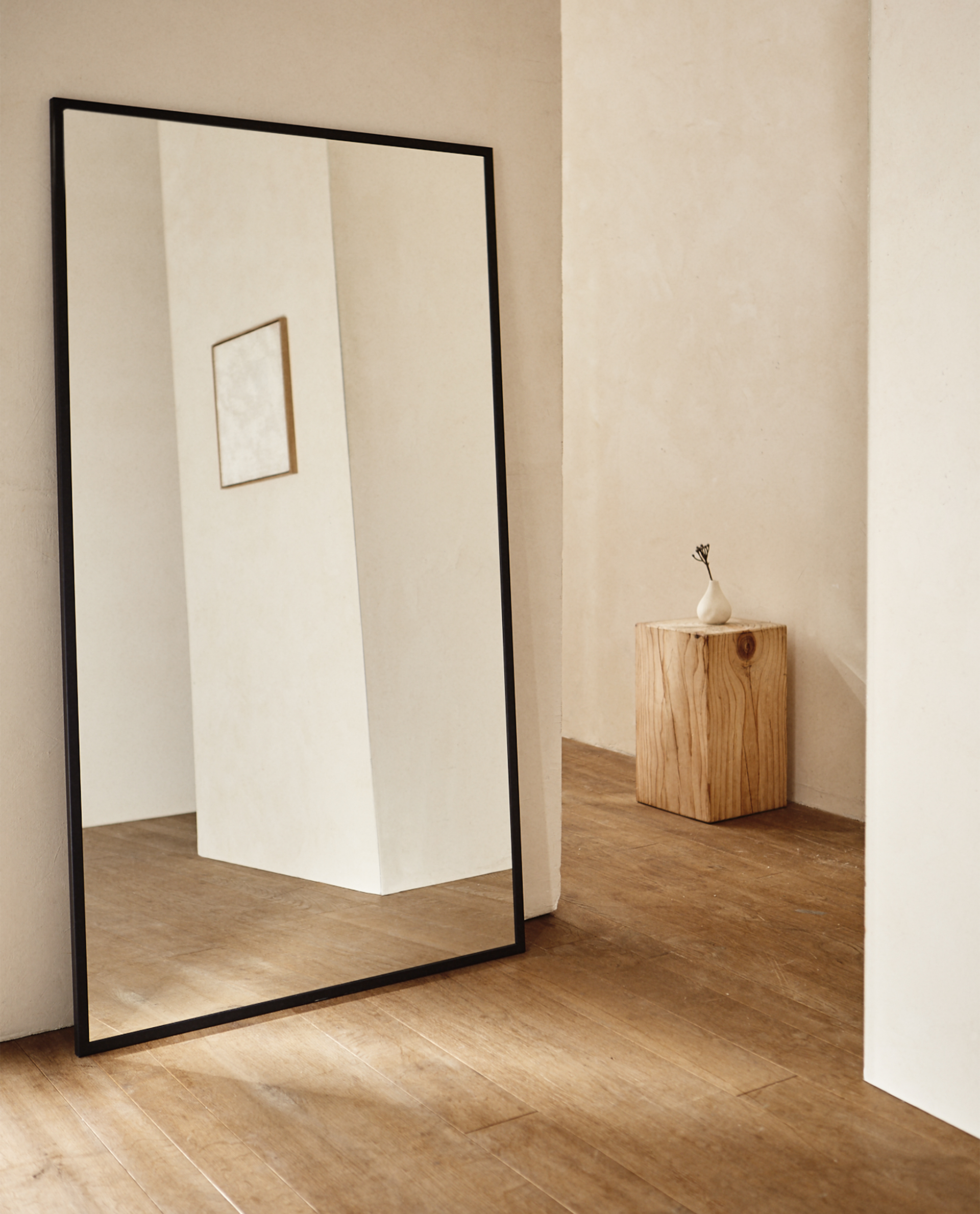 black framed large mirror