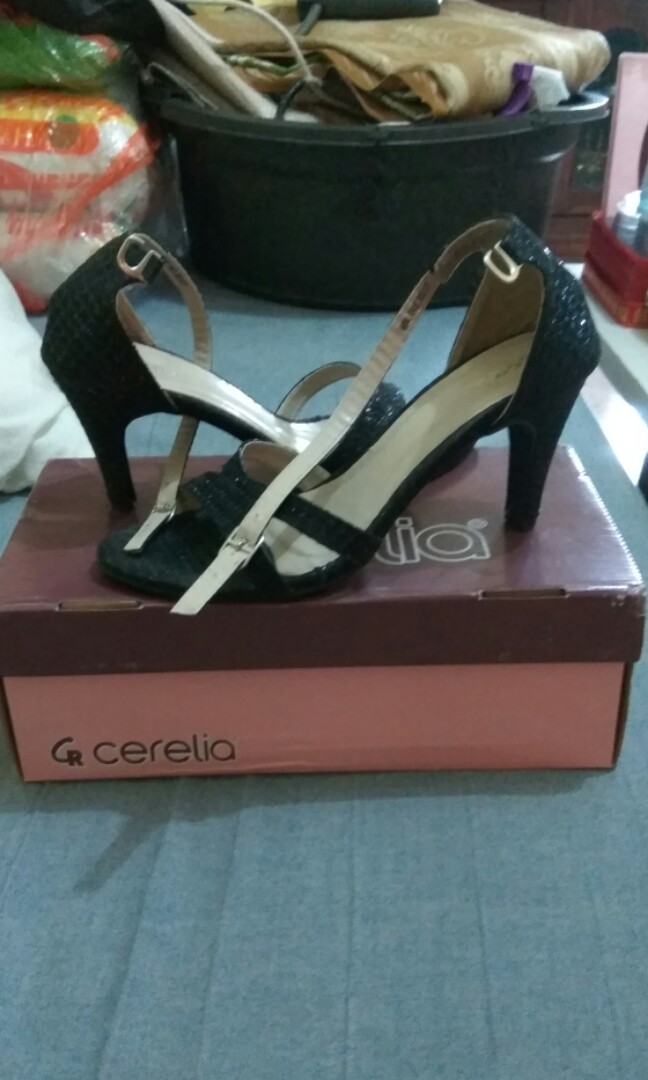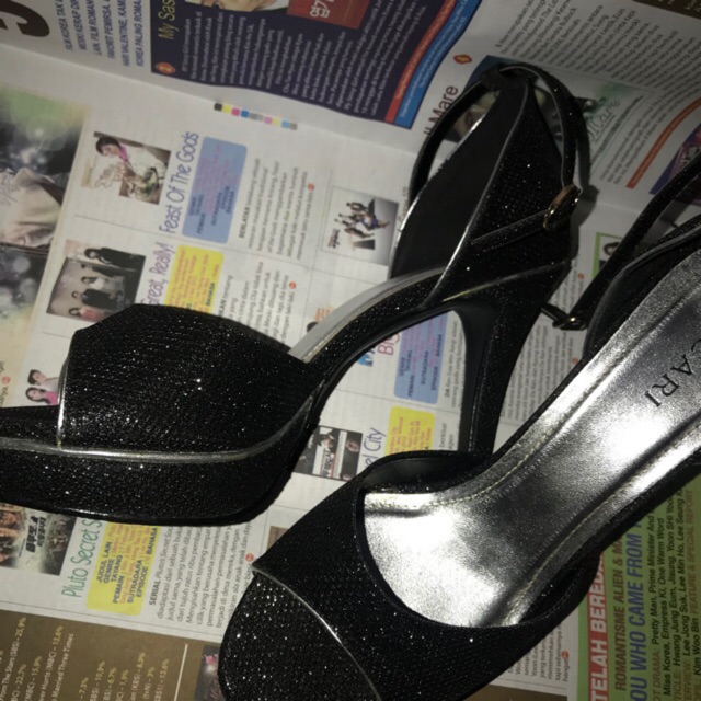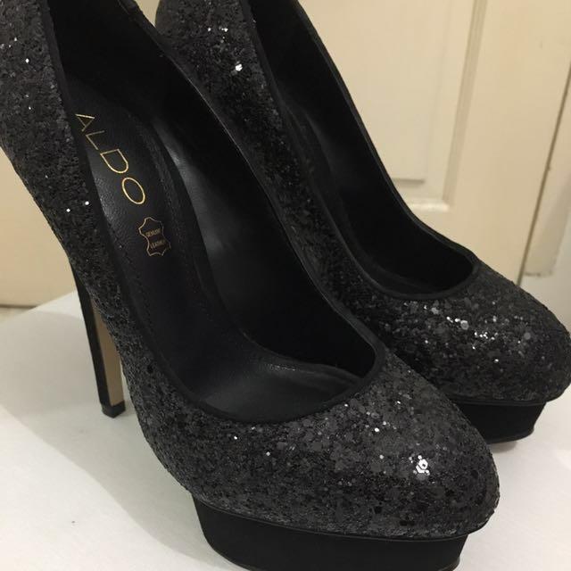 black glitter heels