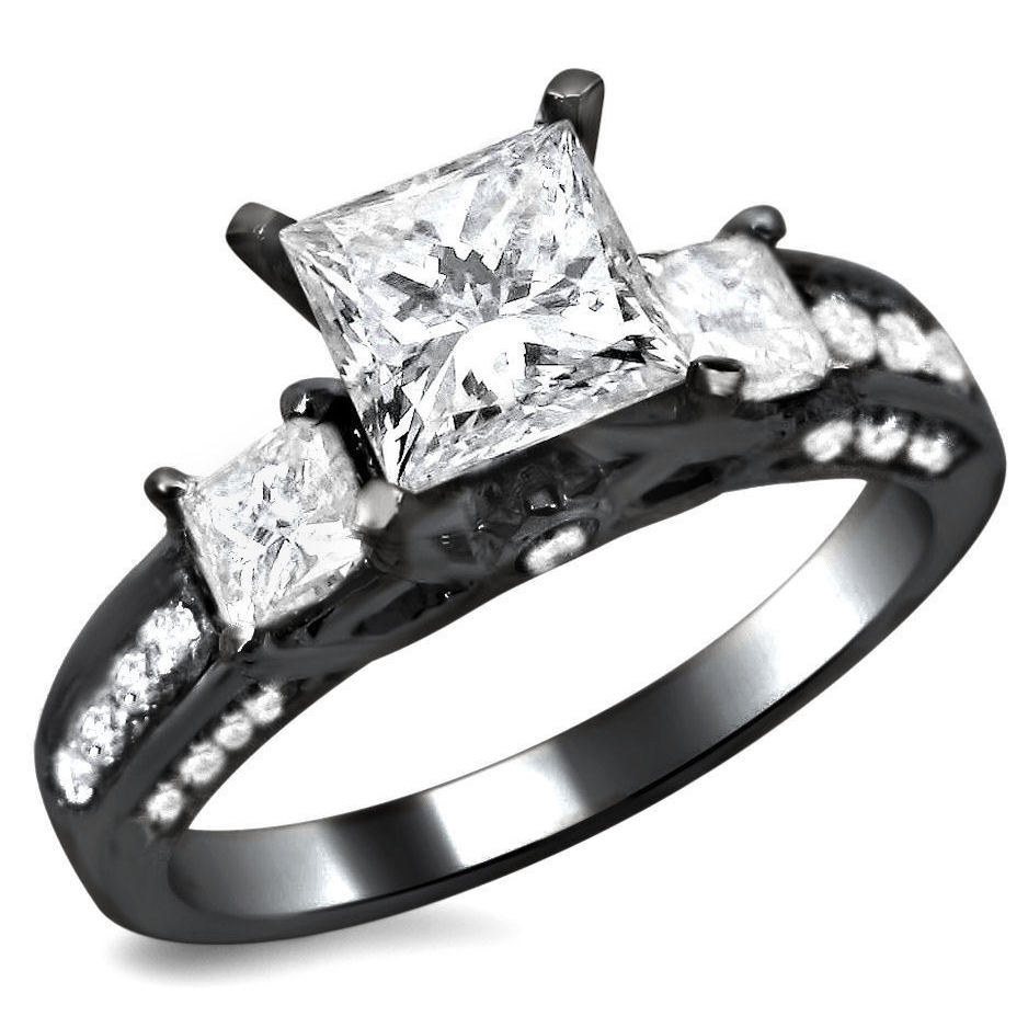 black gold engagement rings with white diamonds