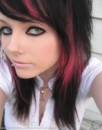 black hair pink highlights