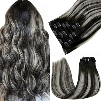 black hair with silver highlights