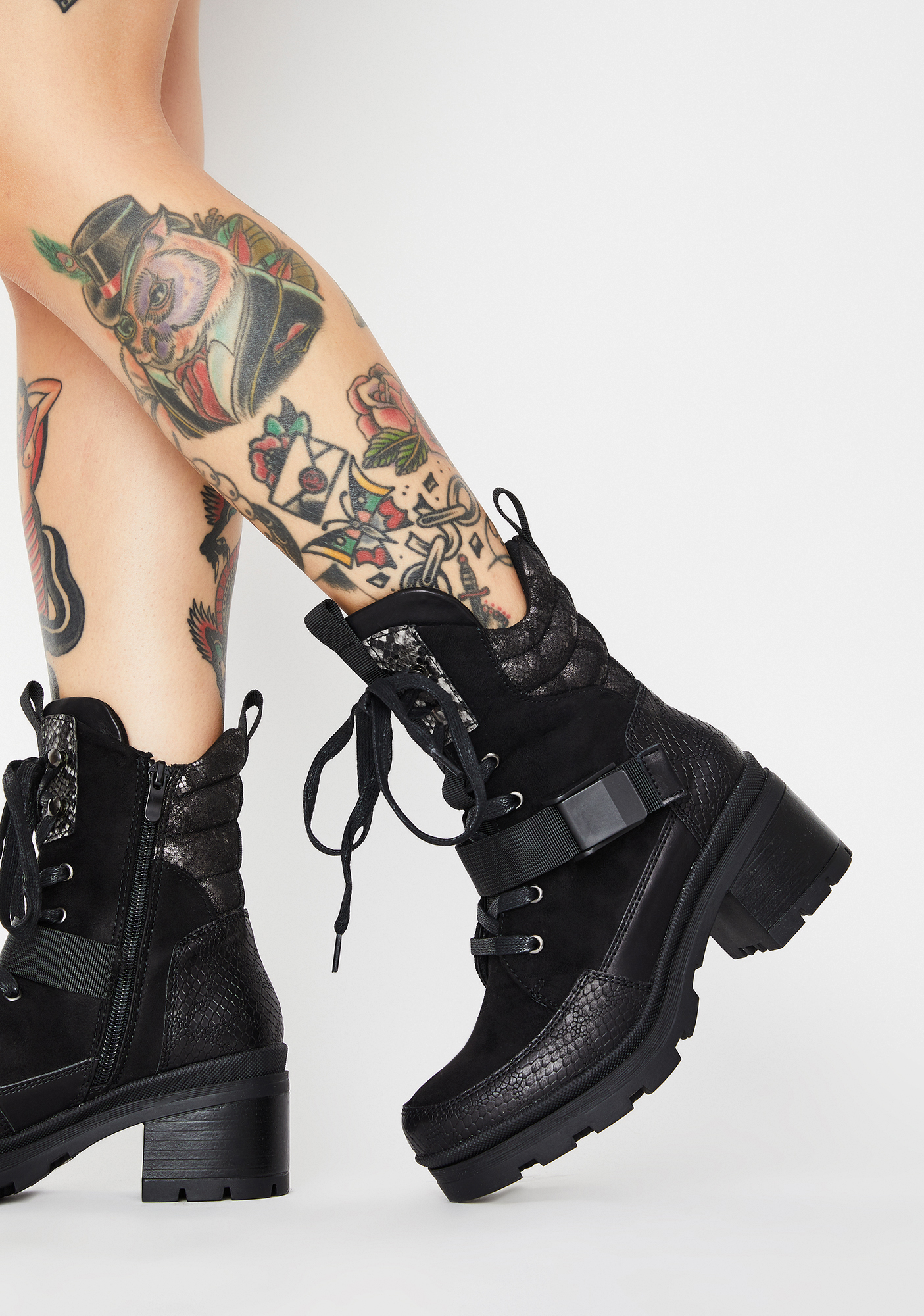 black heeled combat boots