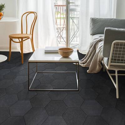 black hexagon tile bathroom