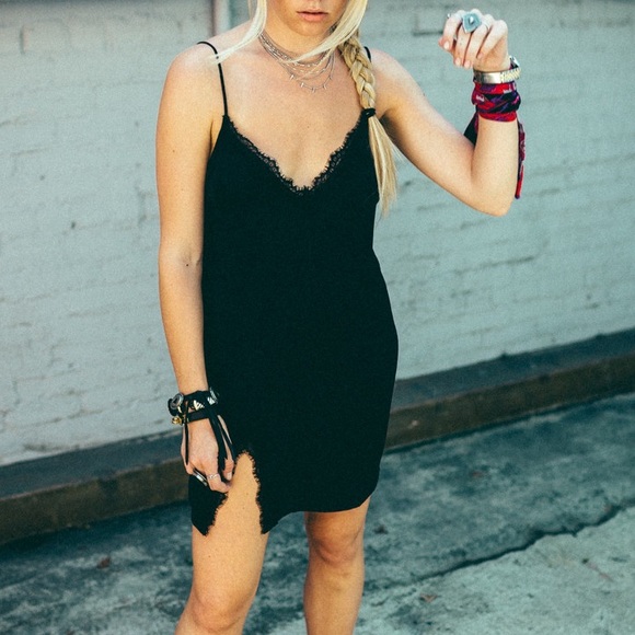 black lace slip dress