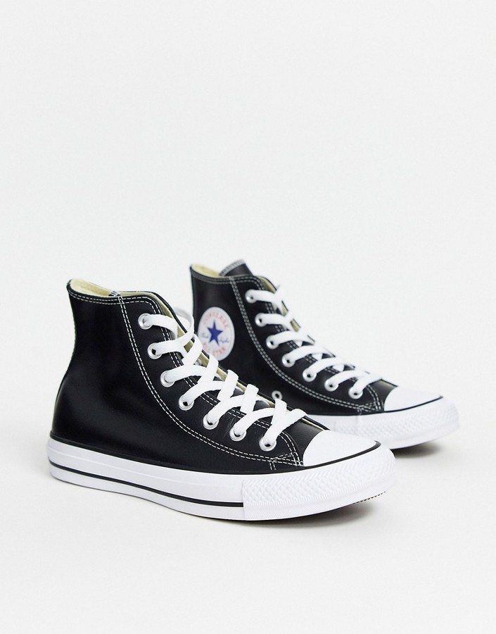 black leather converse high tops