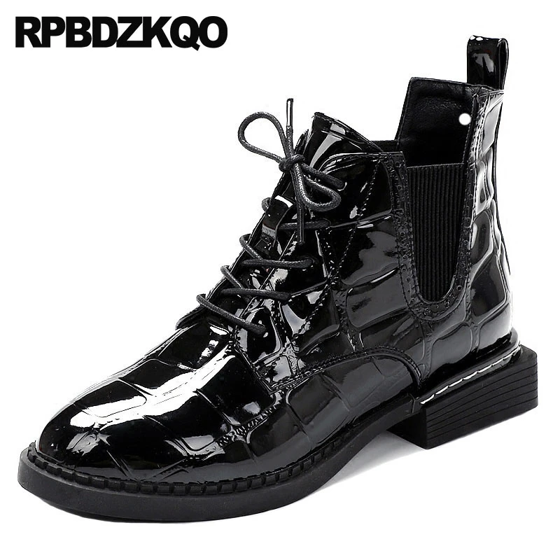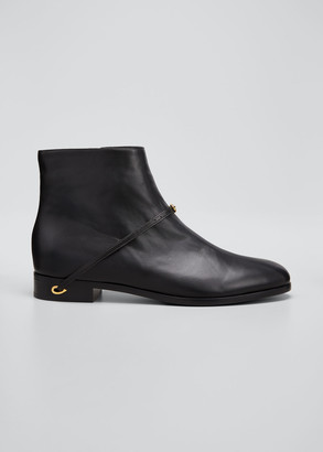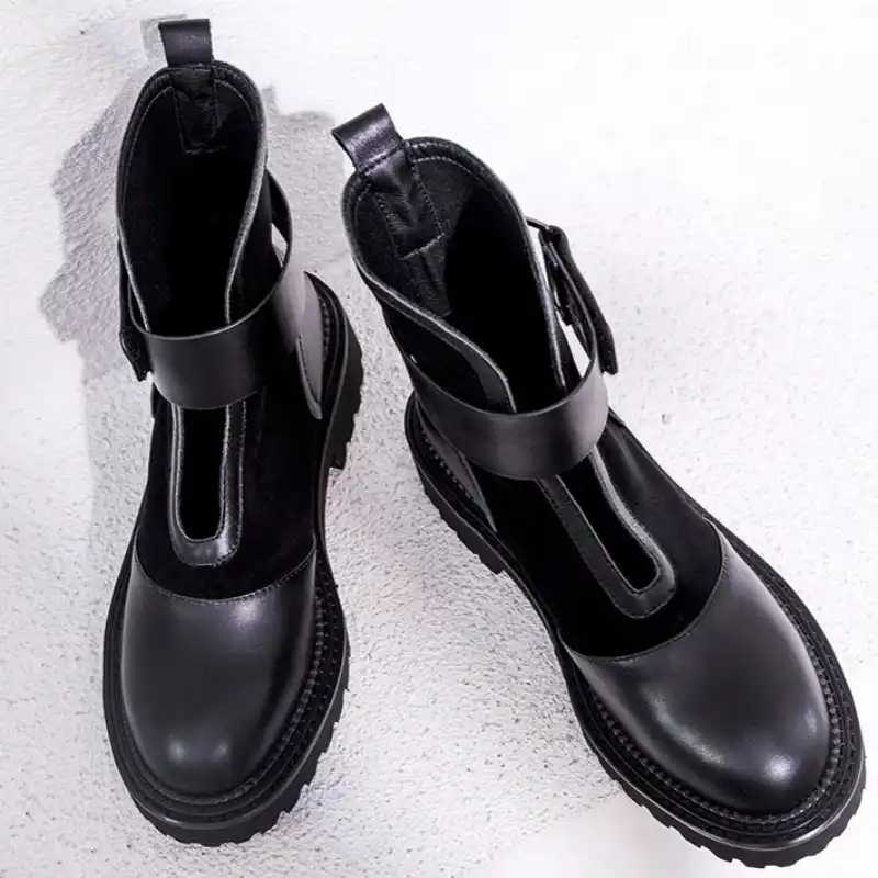 black leather flat bootie