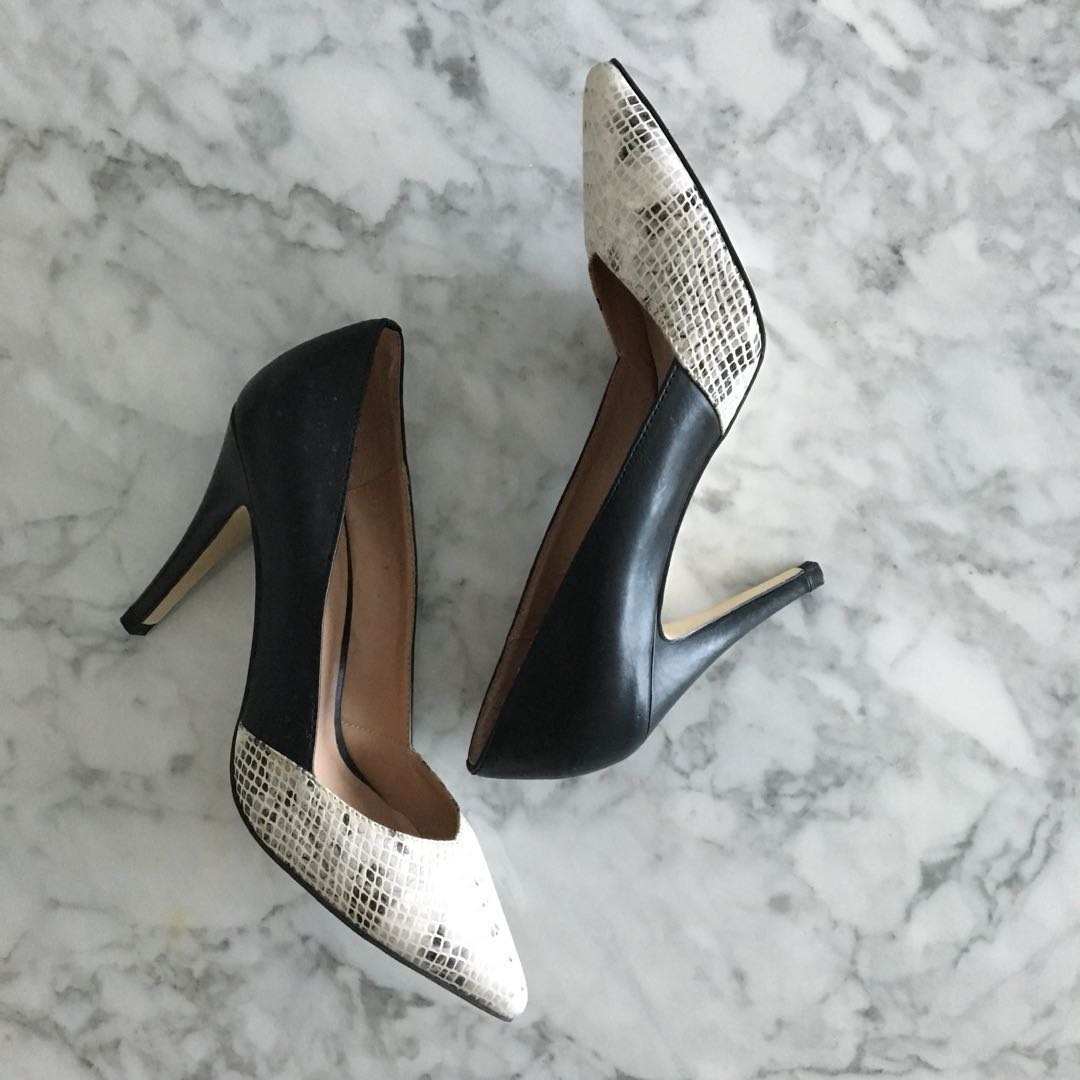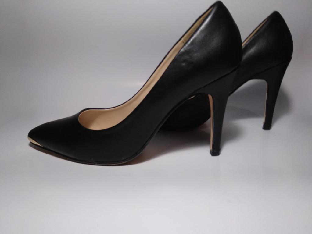 black leather heels