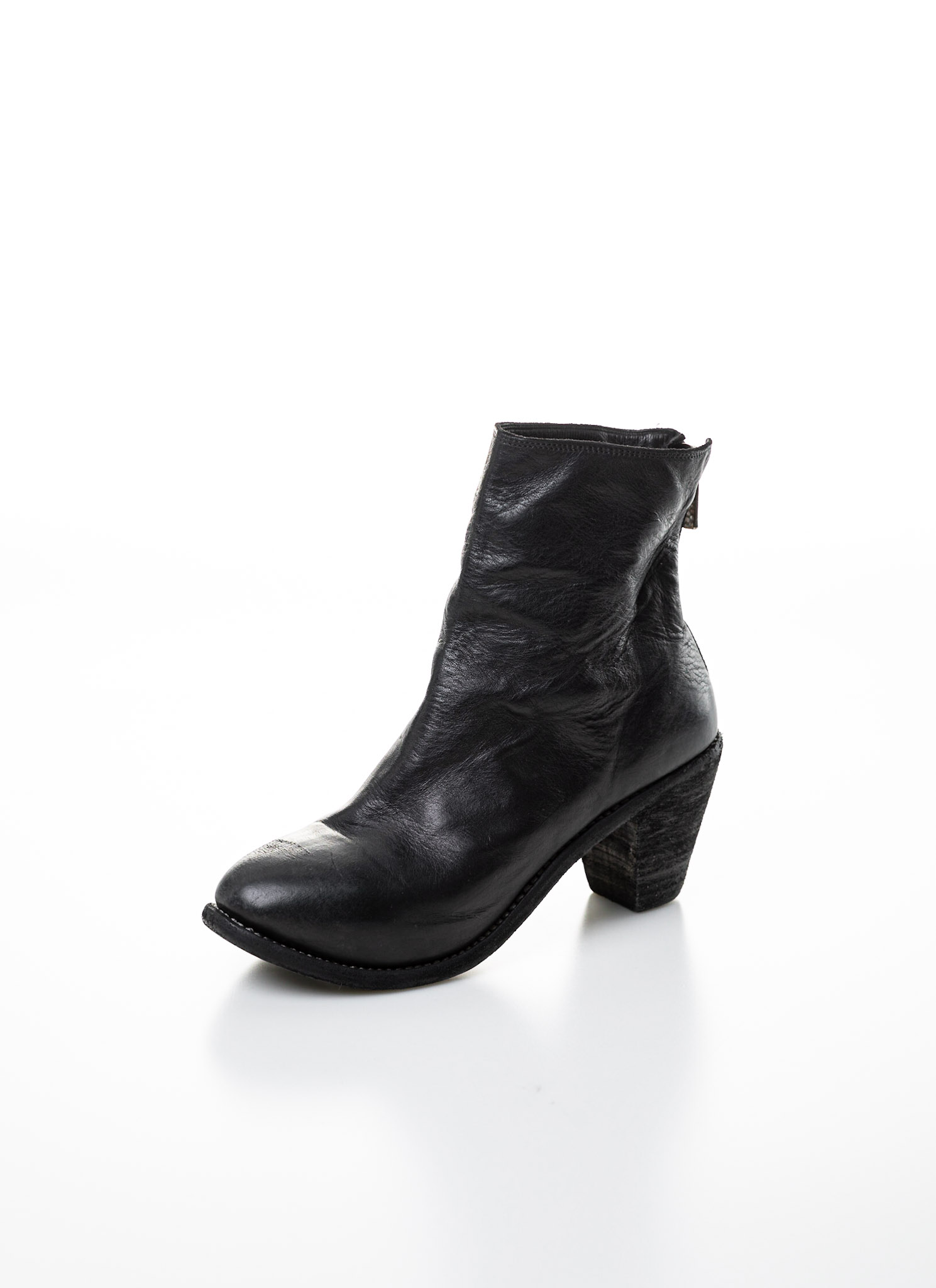 black leather high heel boots