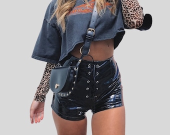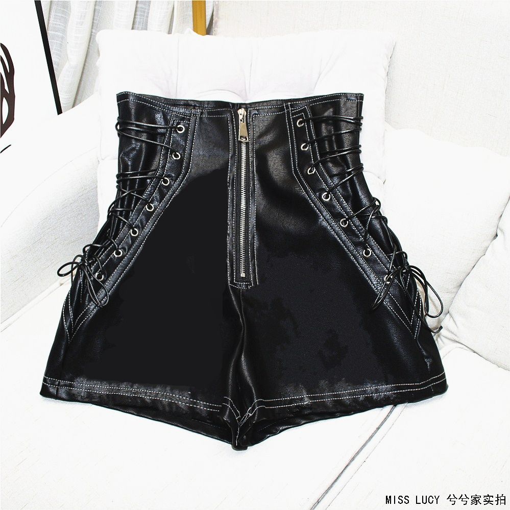 black leather shorts women