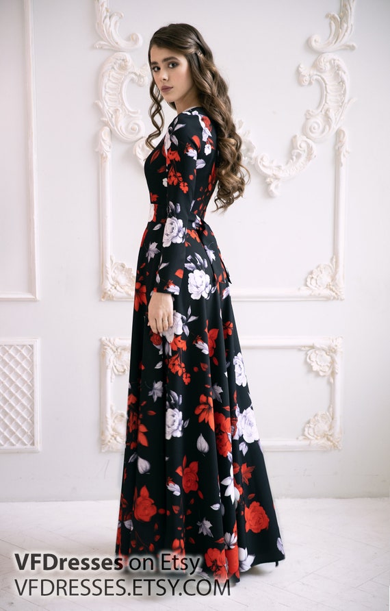 black maxi floral dress