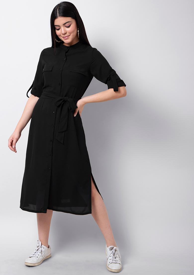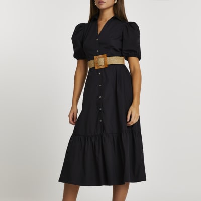 black midi shirt dress