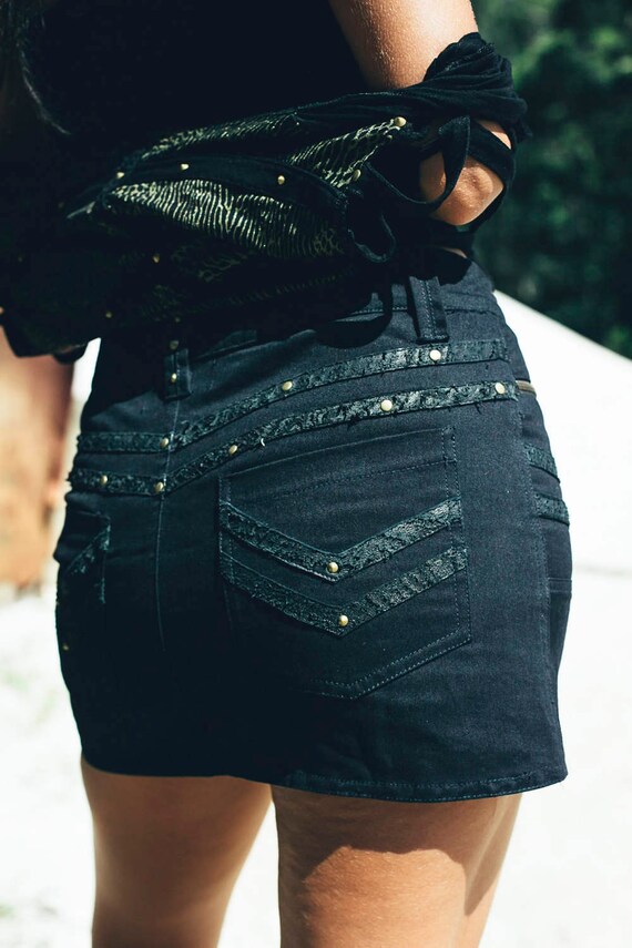 black mini skirt leather