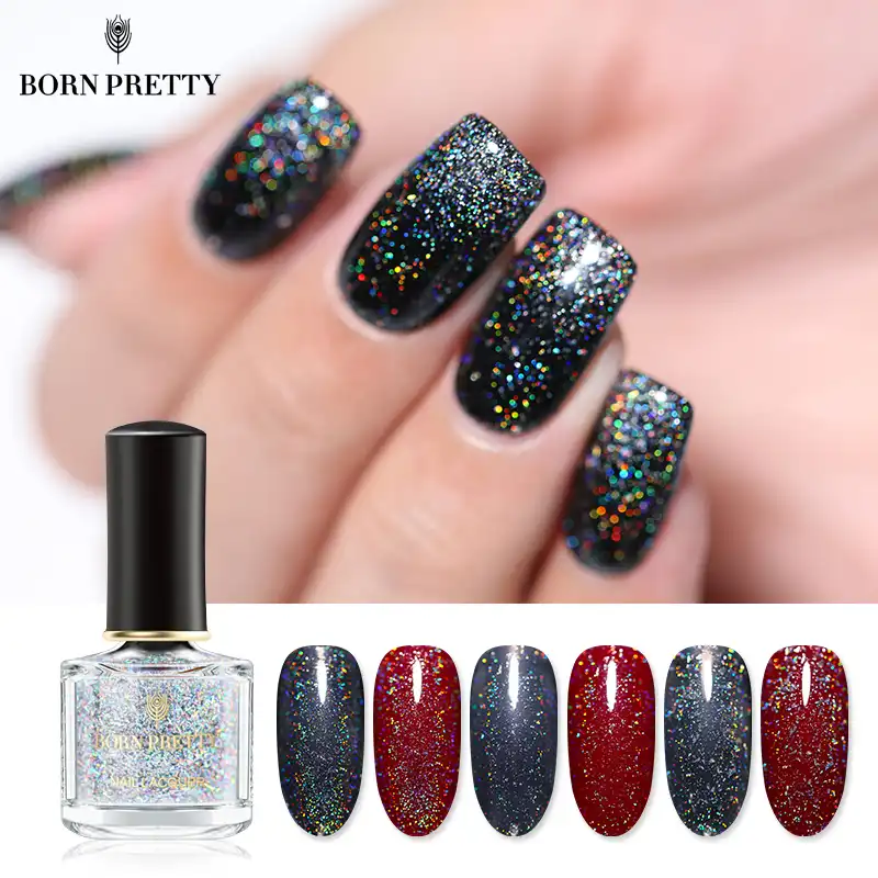 black nail polish with glitter