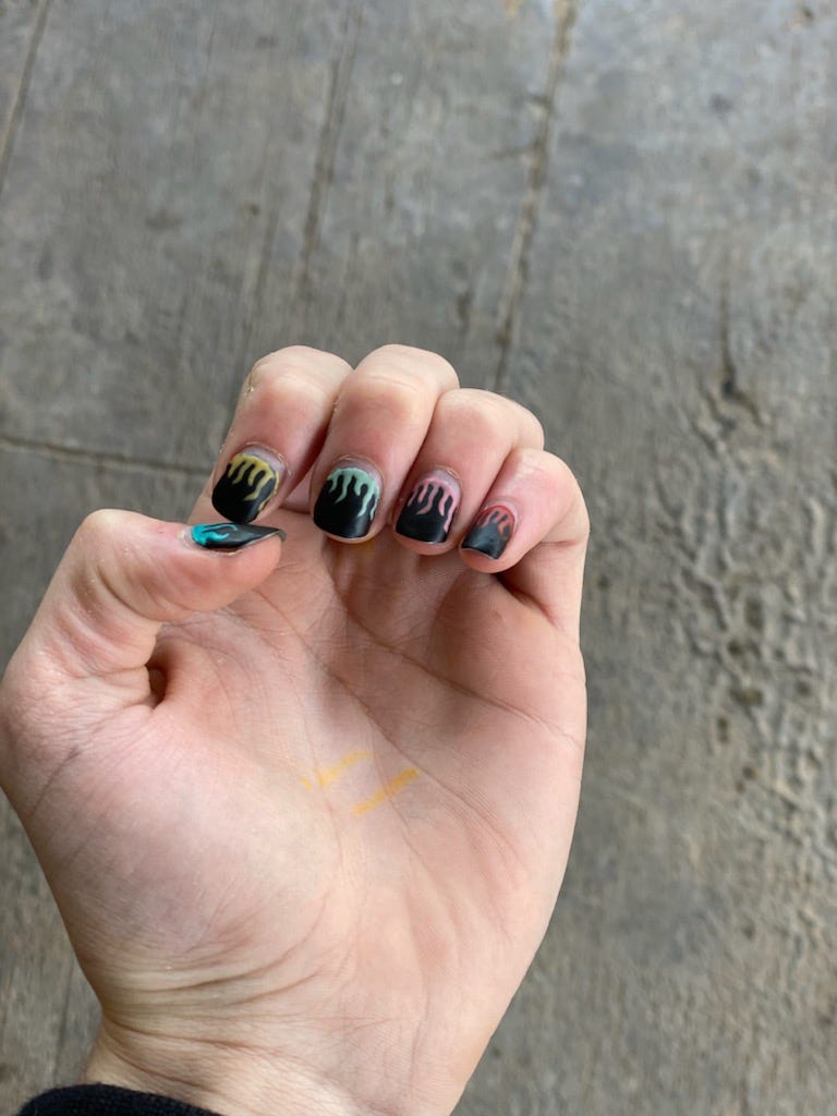 black painted nails