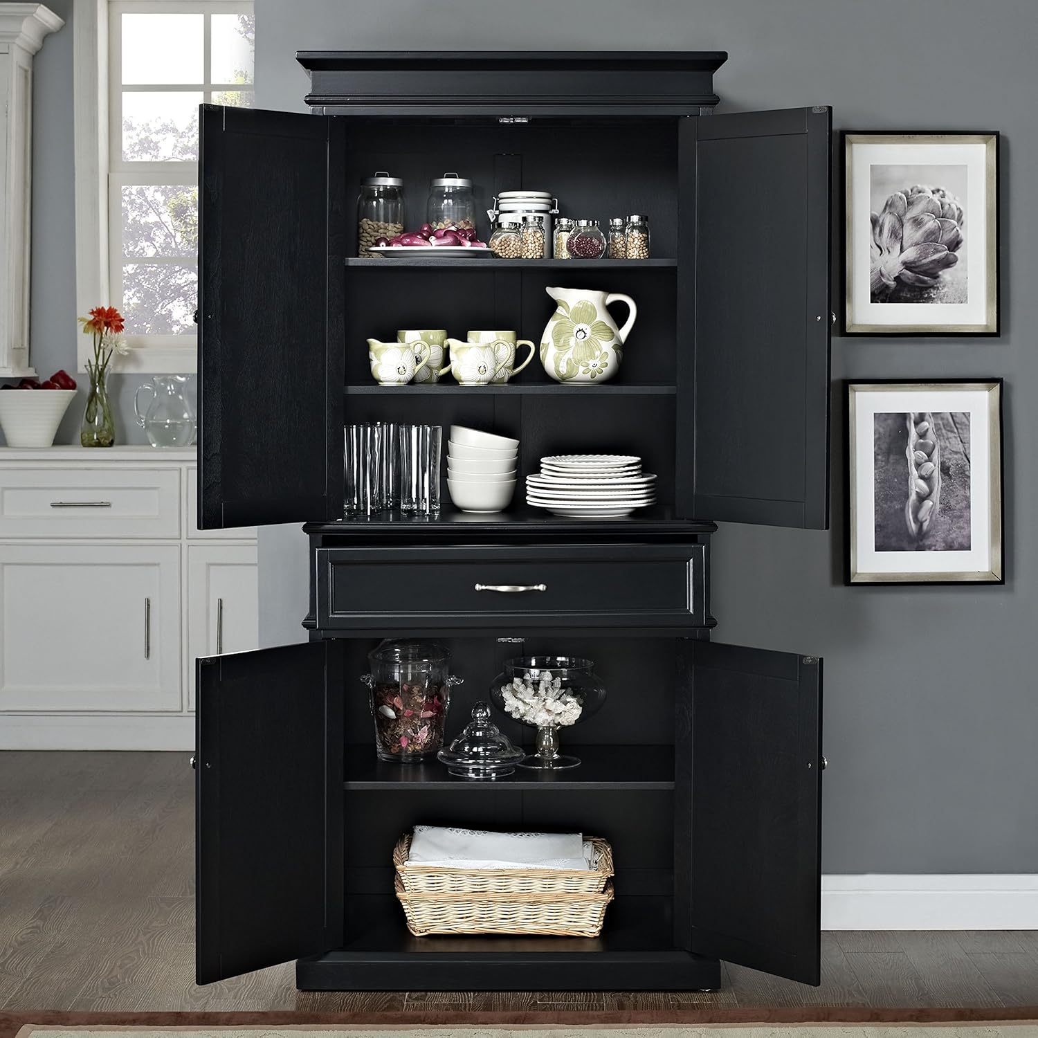 black pantry cabinet