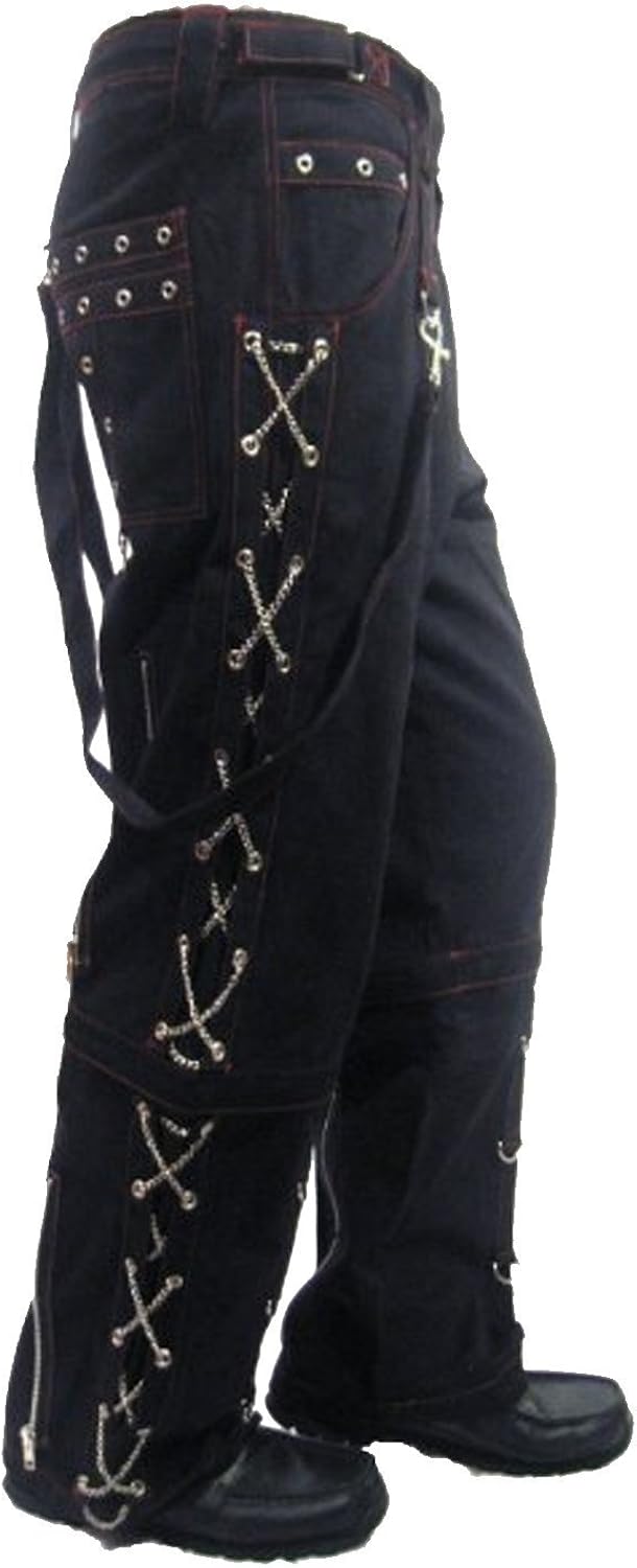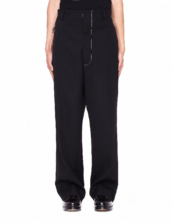 black pants with white stitching
