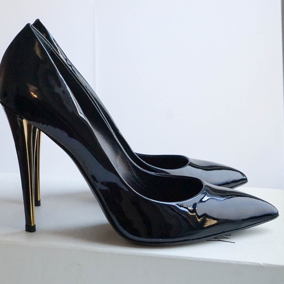 black patent leather pumps