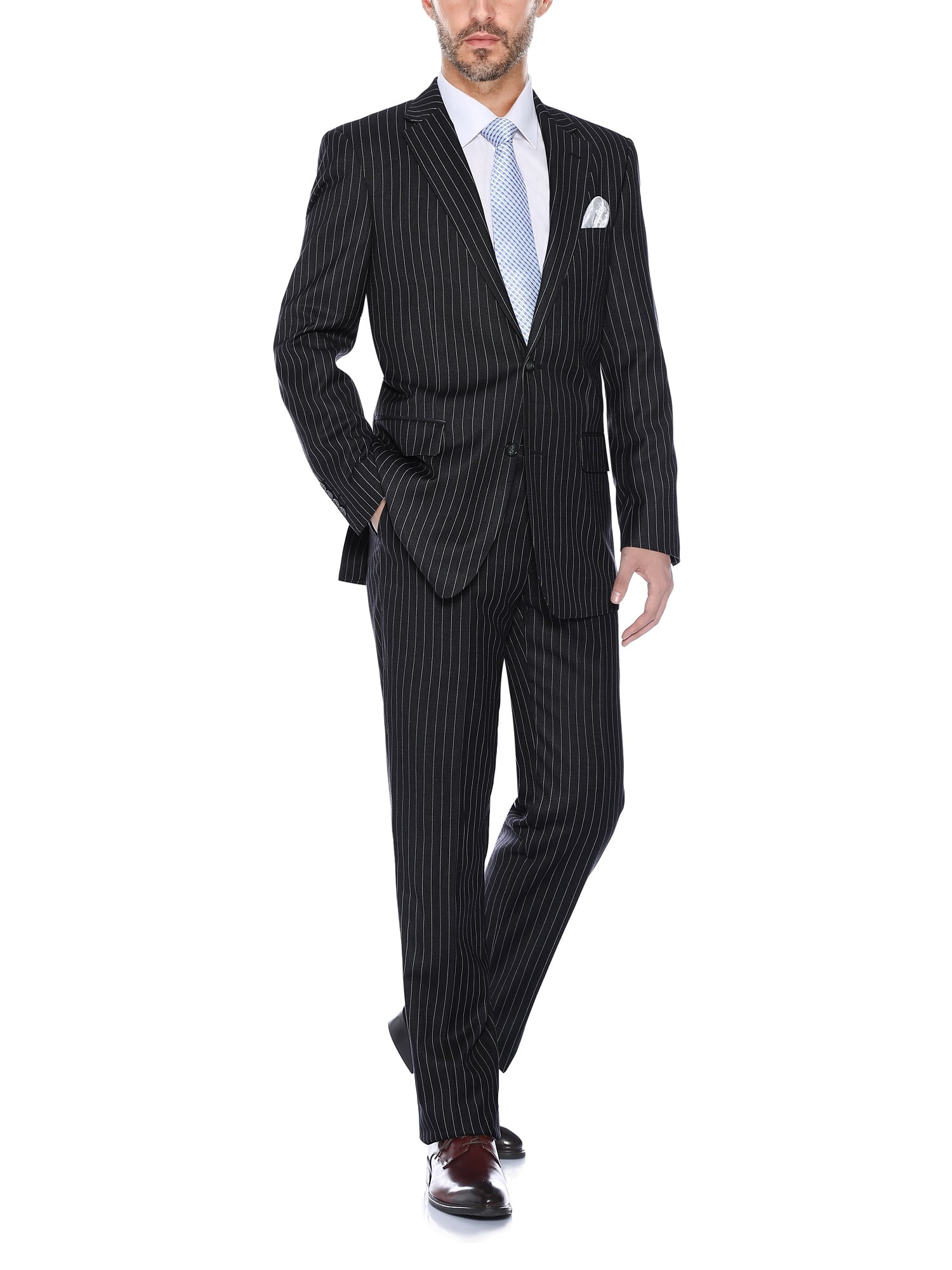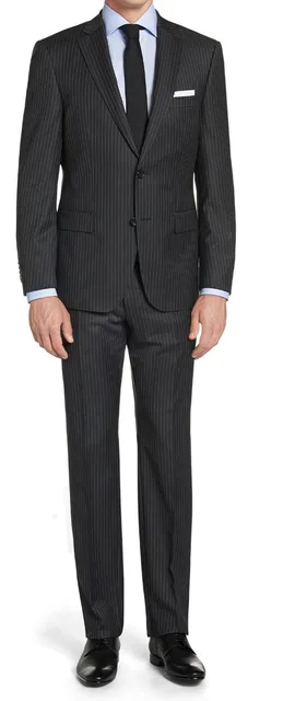 black pinstripe suit