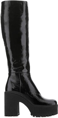 black platform boots knee high