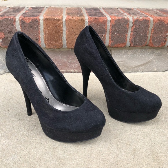 black platform pumps