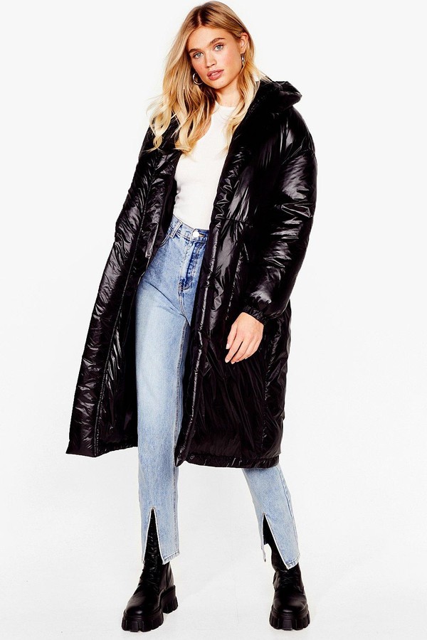 black shiny puffer jacket