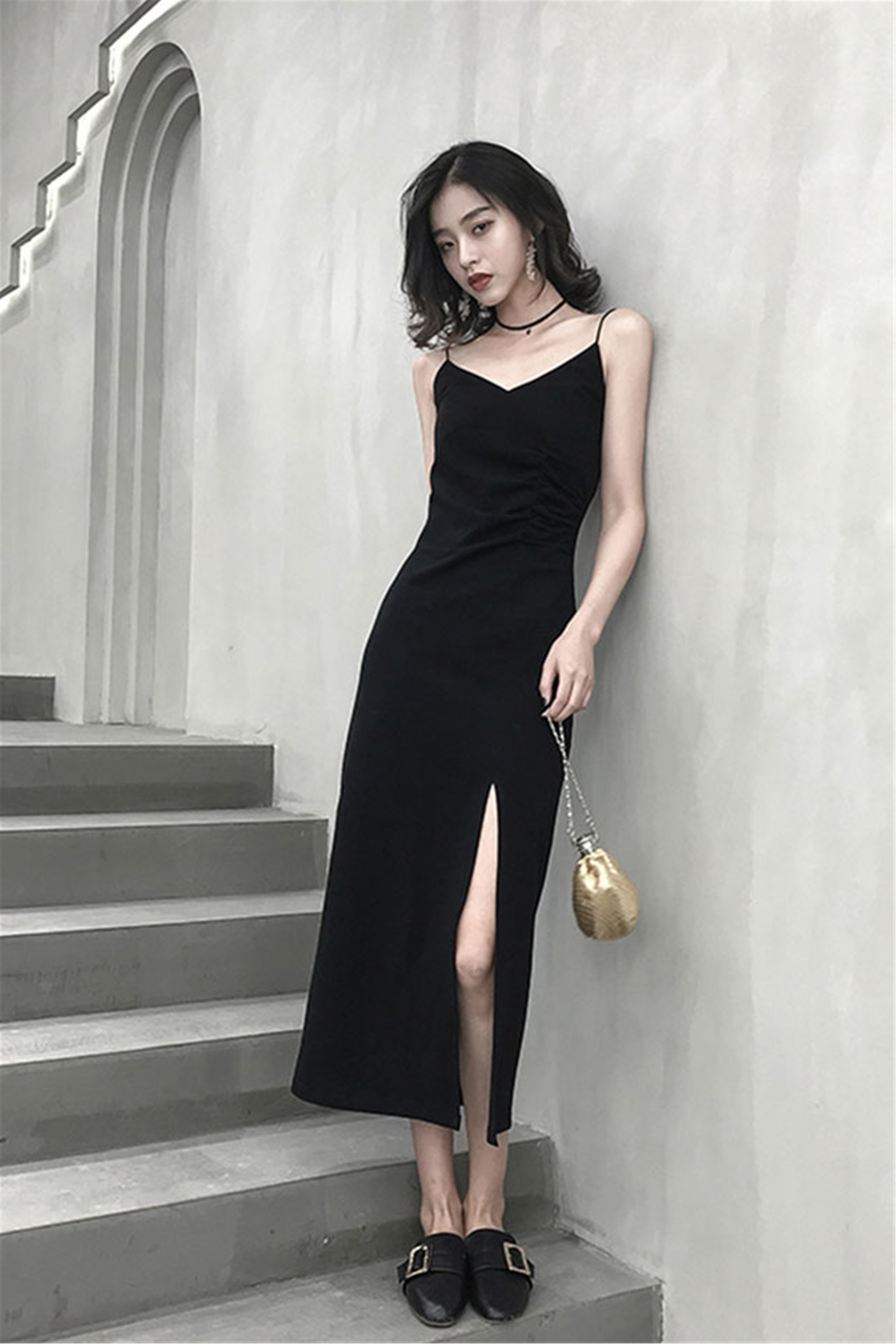 black slit dress