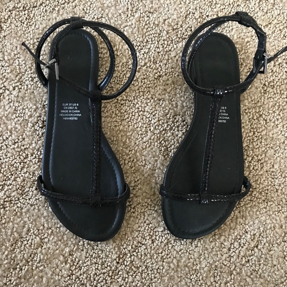 black strap sandals flat