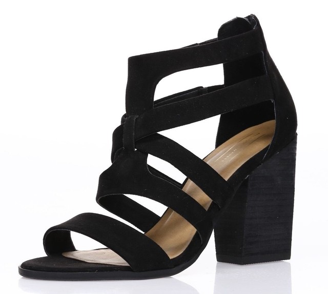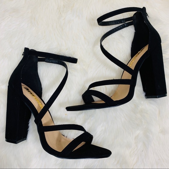 black strappy block heels