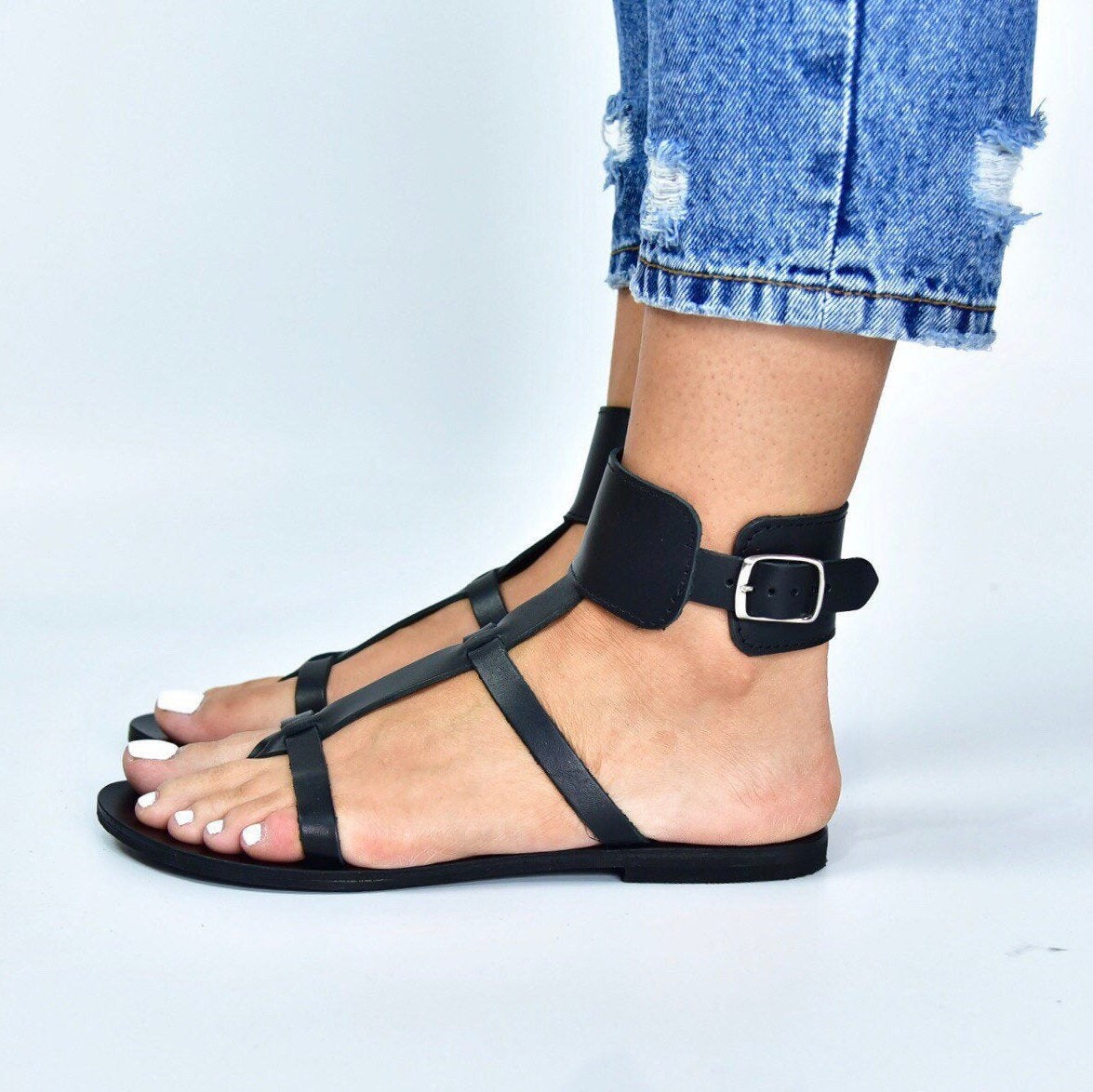 black strappy sandals flat