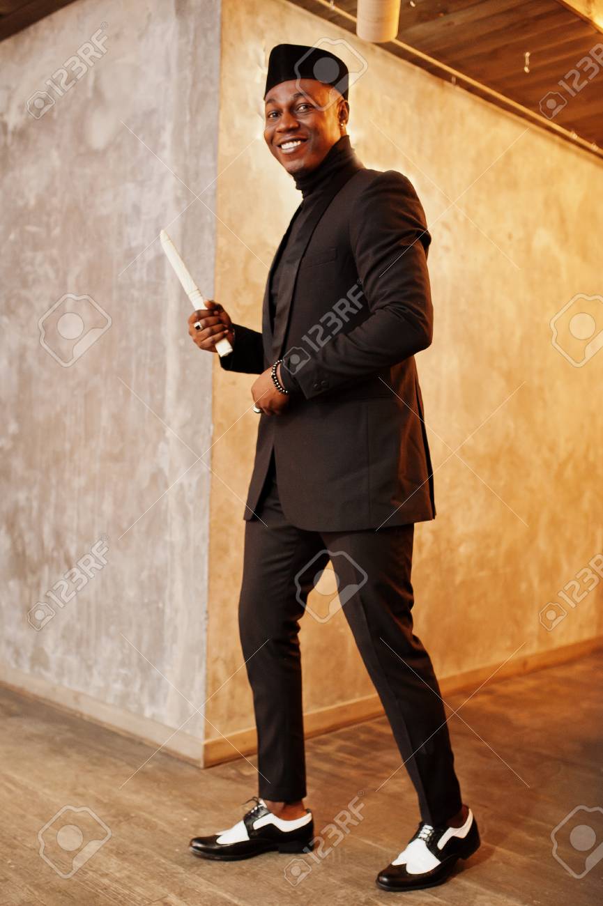 black suit with turtleneck